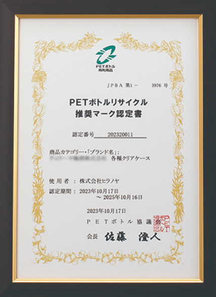 - 回収されたPETボトルを再利用した商品です。