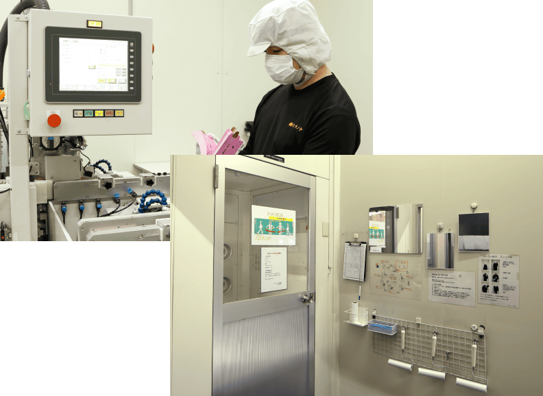 クリーンキャップも使用し、頭髪などが混入しないよう、細心の注意を払っております。