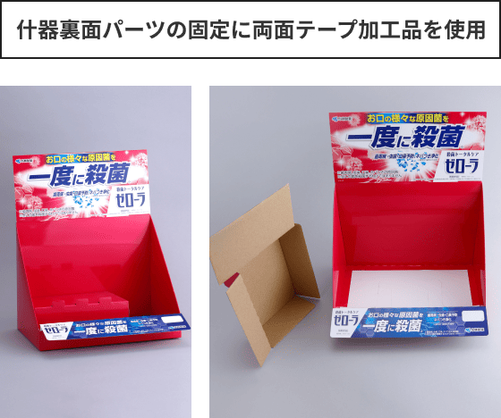 販促用POPは、見えない部分にも細かいパーツが使われていて、仕上がりの美しさ、店舗に置いてからの耐久性、POPを組み立てる際の作業性等々、様々な条件が求められます。