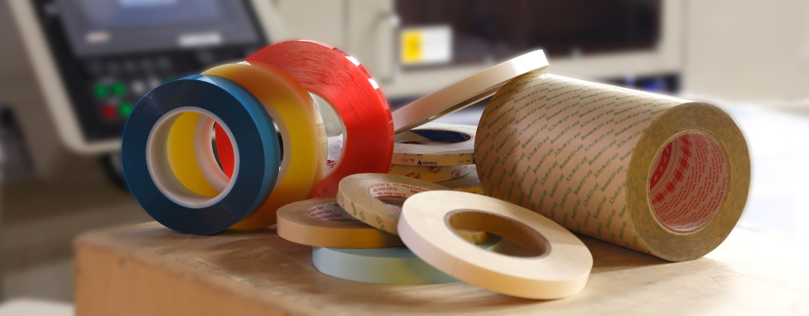 両面テープの原反からお客様のご要望のサイズに合わせてスリット加工が可能です。